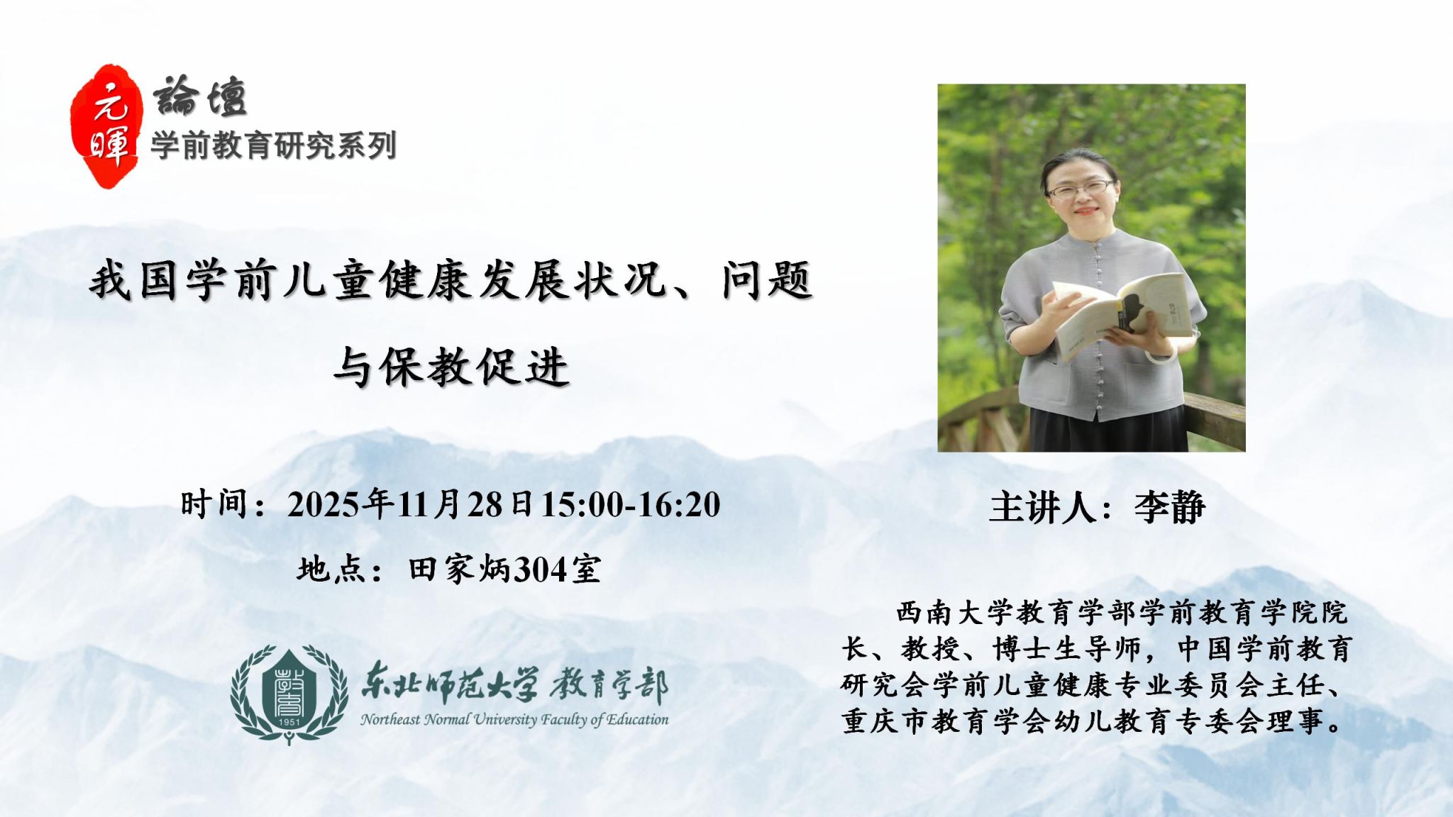 【元晖论坛——学前教育研究系列】李静:我国学前儿童健康发展状况、问题与保教促进
