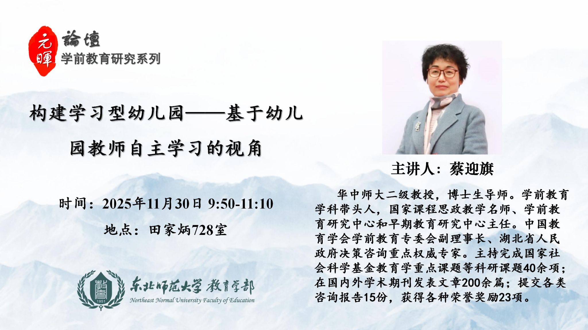 【元晖论坛——学前教育研究系列】蔡迎旗:构建学习型幼儿园——基于幼儿园教师自主学习的视角