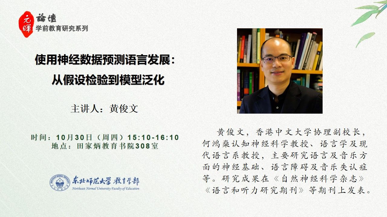 【元晖论坛——学前教育研究系列】黄俊文:使用神经数据预测语言发展——从假设检验到模型泛化