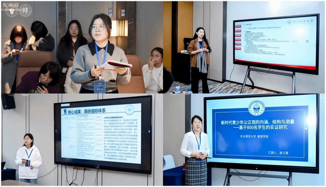 学部4名教育博士研究生所提交的论文被组委会遴选为分论坛报告。2024级学校课程与教学方向的达佳敏分享主题是《数智时代小学科学教学中“手”的失落现象研究》,2023级教育领导与管理方向的赵欣雨分享主题是《人工智能赋能教养医一体化托育人才培养模式研究》,2024级教育领导与管理方向的安佳分享主题是《适配高校多元场景的教师数字素养综合评价指标体系构建》,2022级学生发展与教育方向的崔元慧分享主题是《新时代青少年公正观的内涵、结构与测量一基于800名学生的实证研究》。