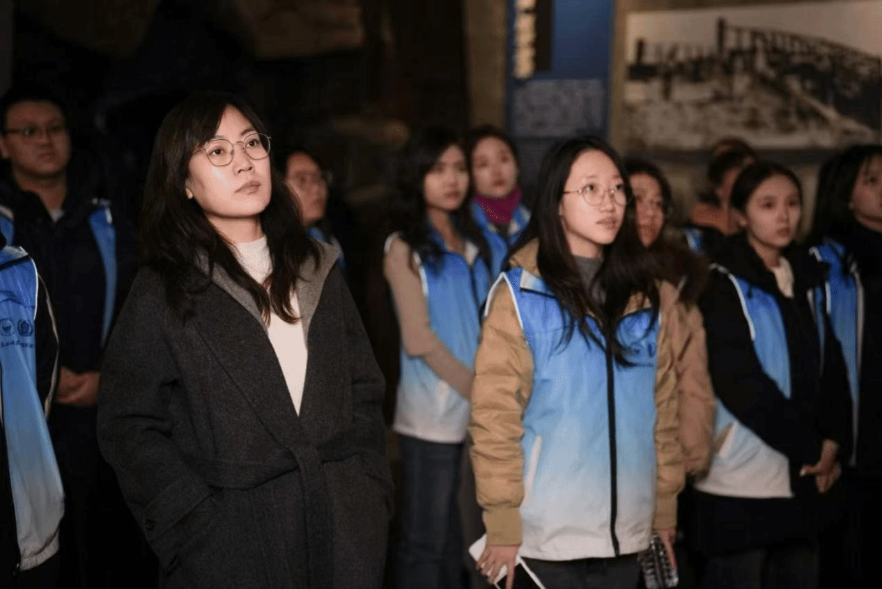抵达辽源首站,学子们直奔二战辽源战俘营旧址。这座亚洲最大的二战战俘营,朴素肃穆的建筑群与周边现代楼宇形成强烈对比,推开斑驳木门,厚重的历史气息瞬间将大家拉回硝烟弥漫的二战时期。在讲解员引导下,学子们走进牢房、参观陈列馆:低矮的屋顶、冰冷的地面诉说着战俘们的苦难,墙壁上指甲刻下的字迹饱含对自由的渴望;泛黄的老照片、锈迹斑斑的衣物令人动容,而日军虐待战俘的刑具、审讯记录则让大家愤慨不已。“盟军战俘不屈斗争墙”上,战俘们组建地下组织、拒绝劳役、以生命捍卫尊严的故事,让学子们深刻体会到 “正义终将战胜邪恶” 的真理。站在曾经见证苦难的广场,阳光洒下却难驱心中沉重,更让大家懂得了珍惜当下和平生活的意义。